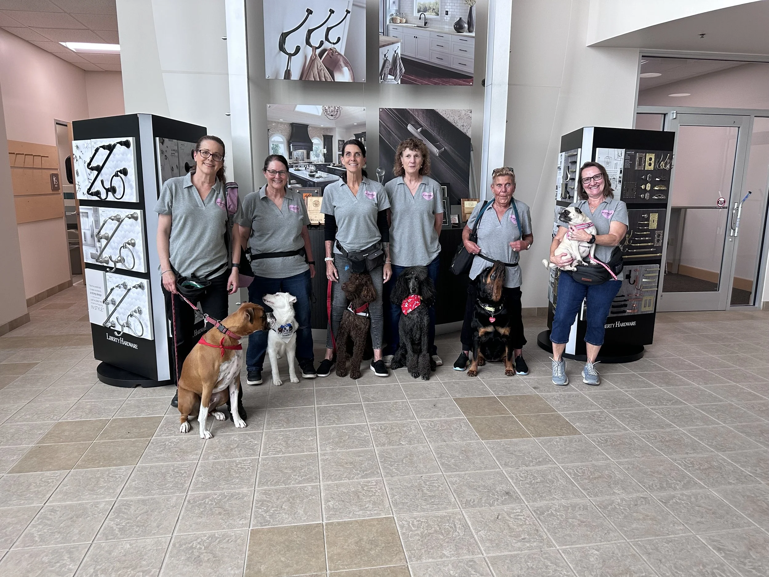 We believe that giving back is important and that well-trained dogs are a fantastic way to help people in the community! We have a volunteer therapy group, K9 Waggers (all certified, insured through ATD), who spend time visiting nursing homes, retirement communities, businesses, schools, etc, to share the love of dogs!